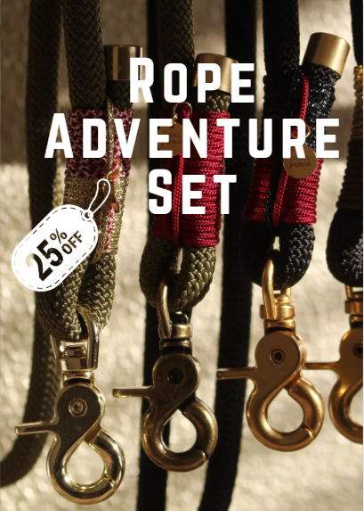 De Rope Adventure Set is speciaal ontworpen voor honden die graag ontdekken. Deze set combineert een stijlvolle, stoere touwlook met functionele accessoires. Alles past prachtig bij elkaar en geeft jullie wandelingen een premium uitstraling.