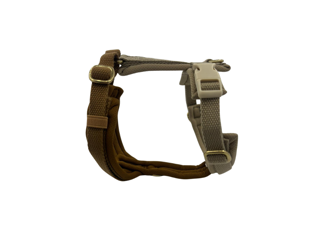 Het hondenharnas bruin en beige van Studio Proud is ontworpen voor baasjes die zowel kwaliteit als stijl belangrijk vinden. De combinatie van warme bruine en lichte beige tinten geeft dit harnas een luxe en tijdloze uitstraling. Dankzij de verstelbare pasvorm sluit het harnas perfect aan, zodat jouw hond zich vrij en comfortabel kan bewegen.